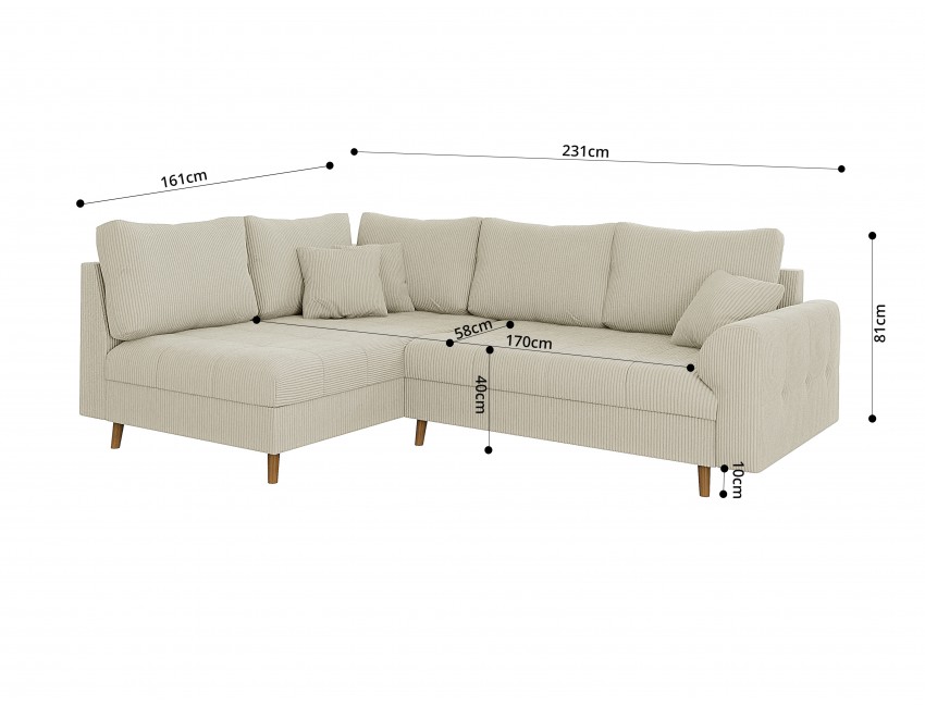 Ez az L-alakú sarokkanapé ideális választás mindazok számára, akik egy esztétikus, kényelmes és megbízható ülőbútort keresnek a nappaliba.