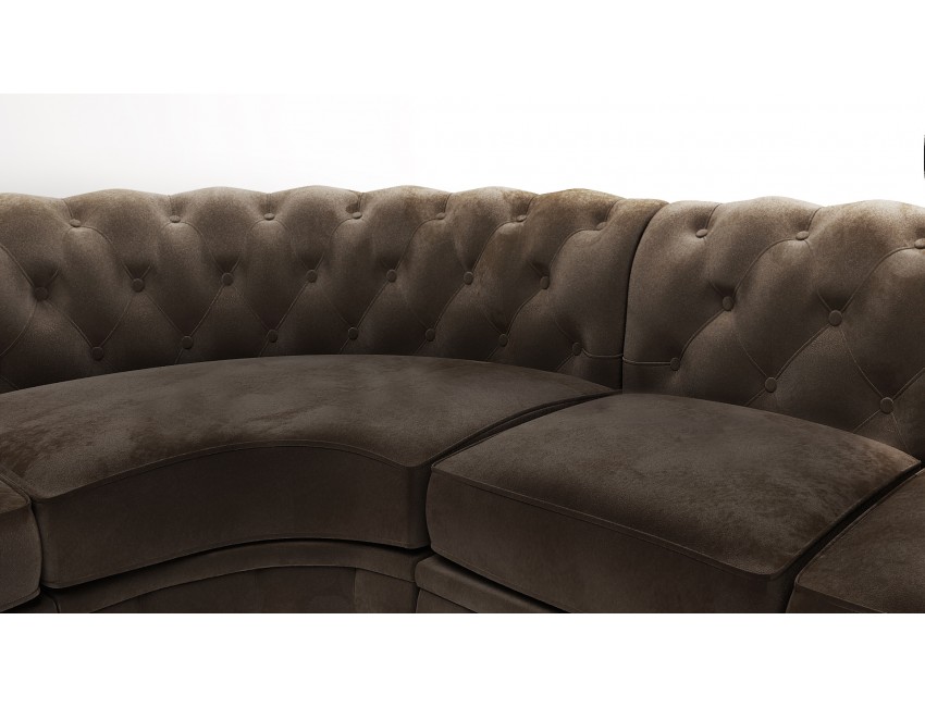 Ez a Chesterfield típusú kanapé a klasszikus stílus és az időtlen elegancia tökéletes megtestesítője. Jellegzetes steppelt háttámlája, gombos kialakítása és formás karfái exkluzív megjelenést kölcsönöznek, amely azonnal a tér központi elemévé válik.