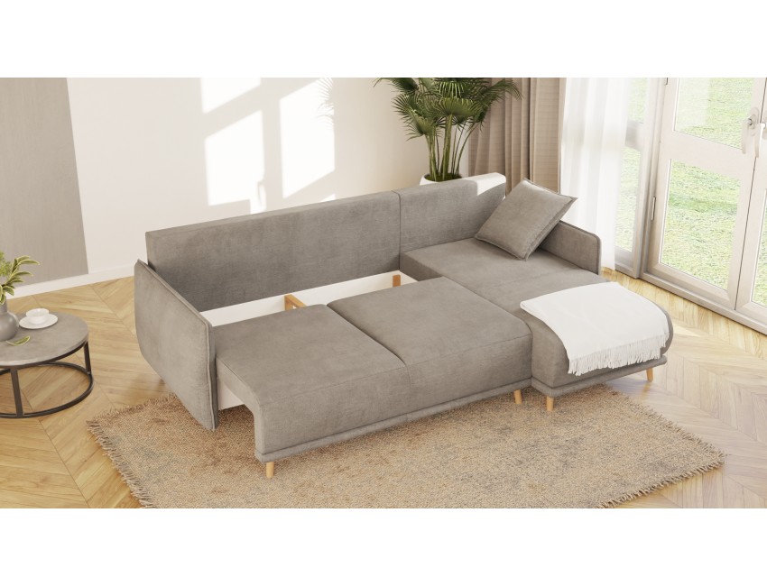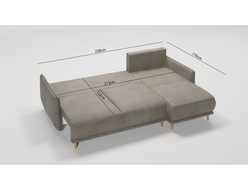 A kanapé könnyedén ággyá alakítható, így kényelmes fekvőhelyet biztosít vendégek számára. A beépített ágyneműtartópraktikus tárolási lehetőséget nyújt, segít rendben tartani a párnákat, takarókat és egyéb kiegészítőket.