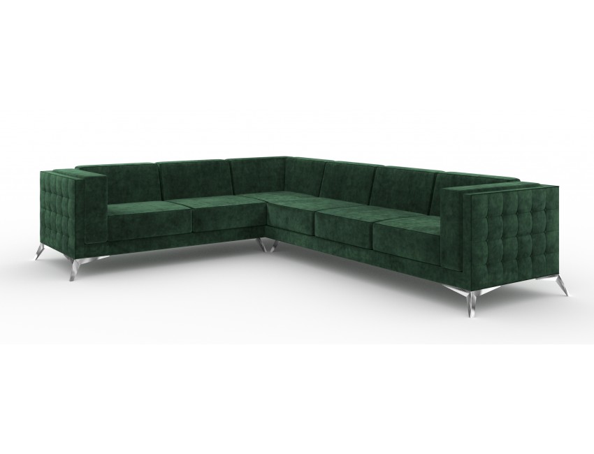 Ez a Chesterfield típusú kanapé a klasszikus stílus és az időtlen elegancia tökéletes megtestesítője. Jellegzetes steppelt háttámlája, gombos kialakítása és formás karfái exkluzív megjelenést kölcsönöznek, amely azonnal a tér központi elemévé válik.